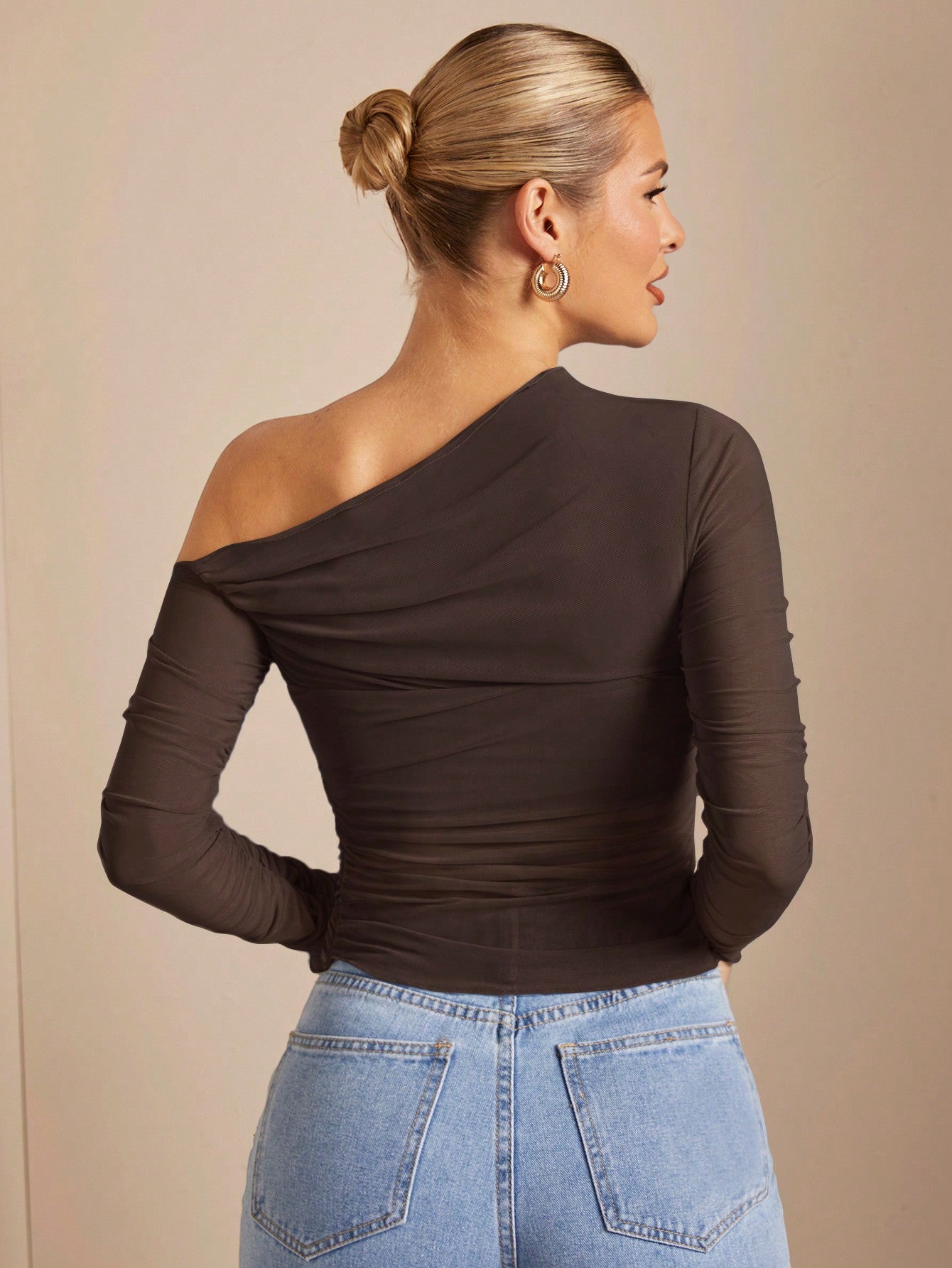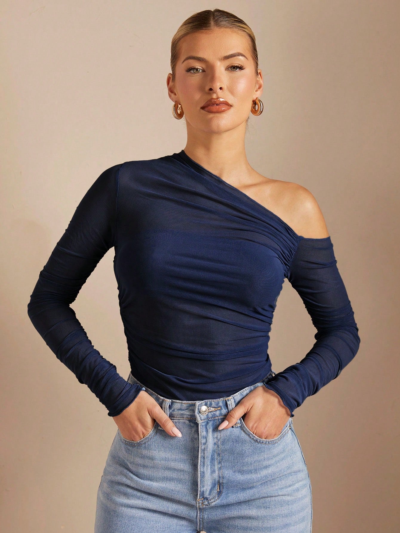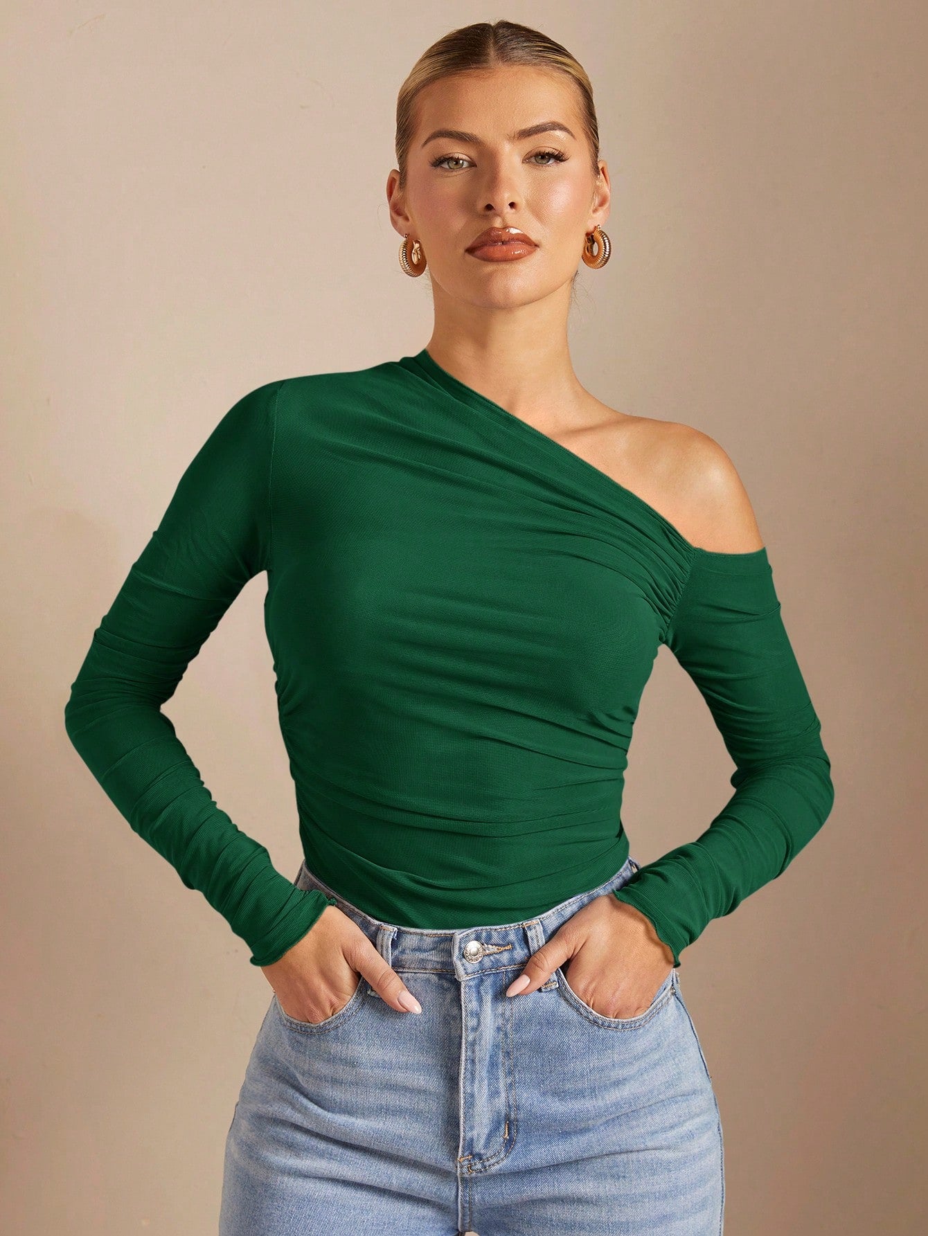 Einfarbiges figurbetontes T-Shirt Damen – Schräg und gerafft für perfekten Sitz