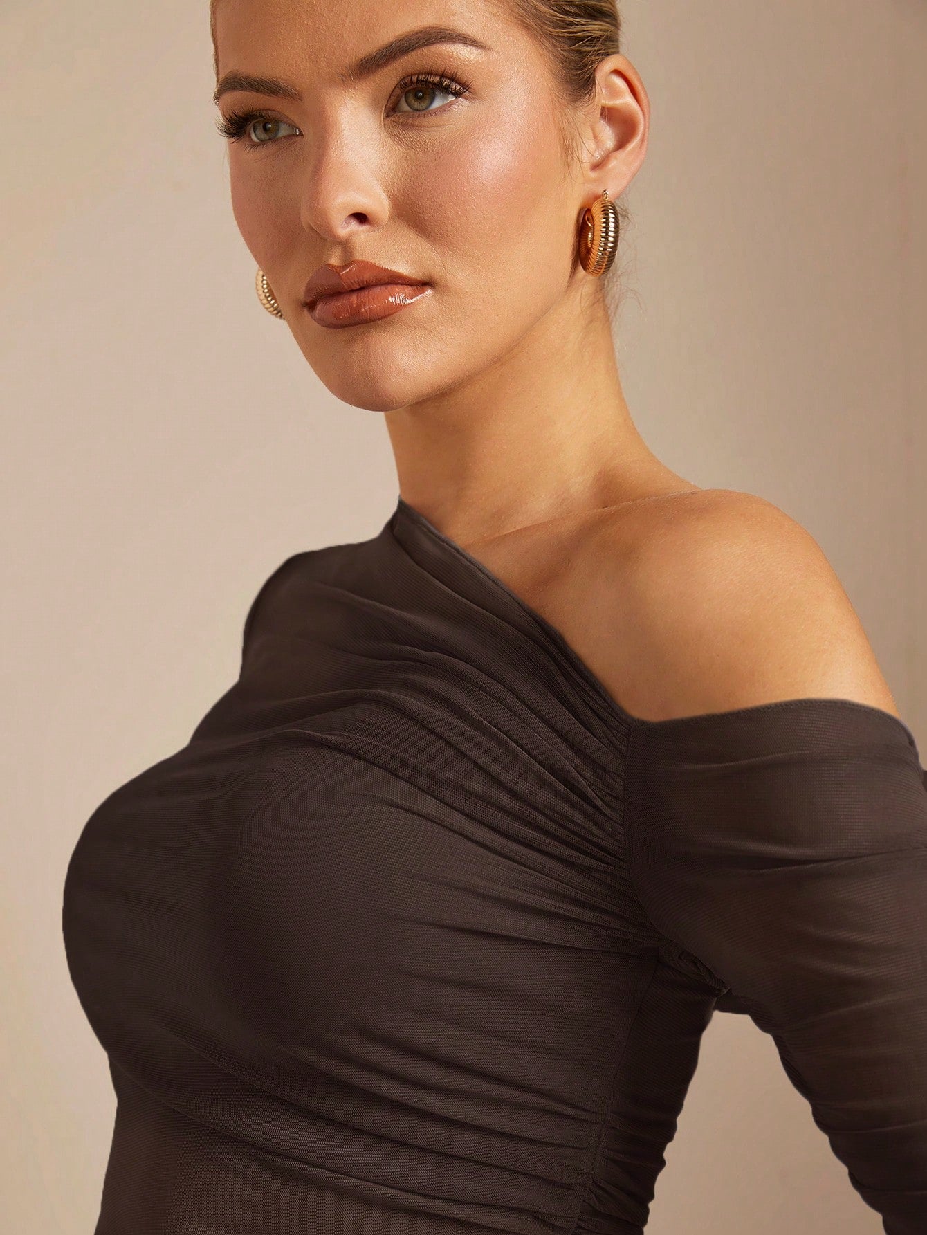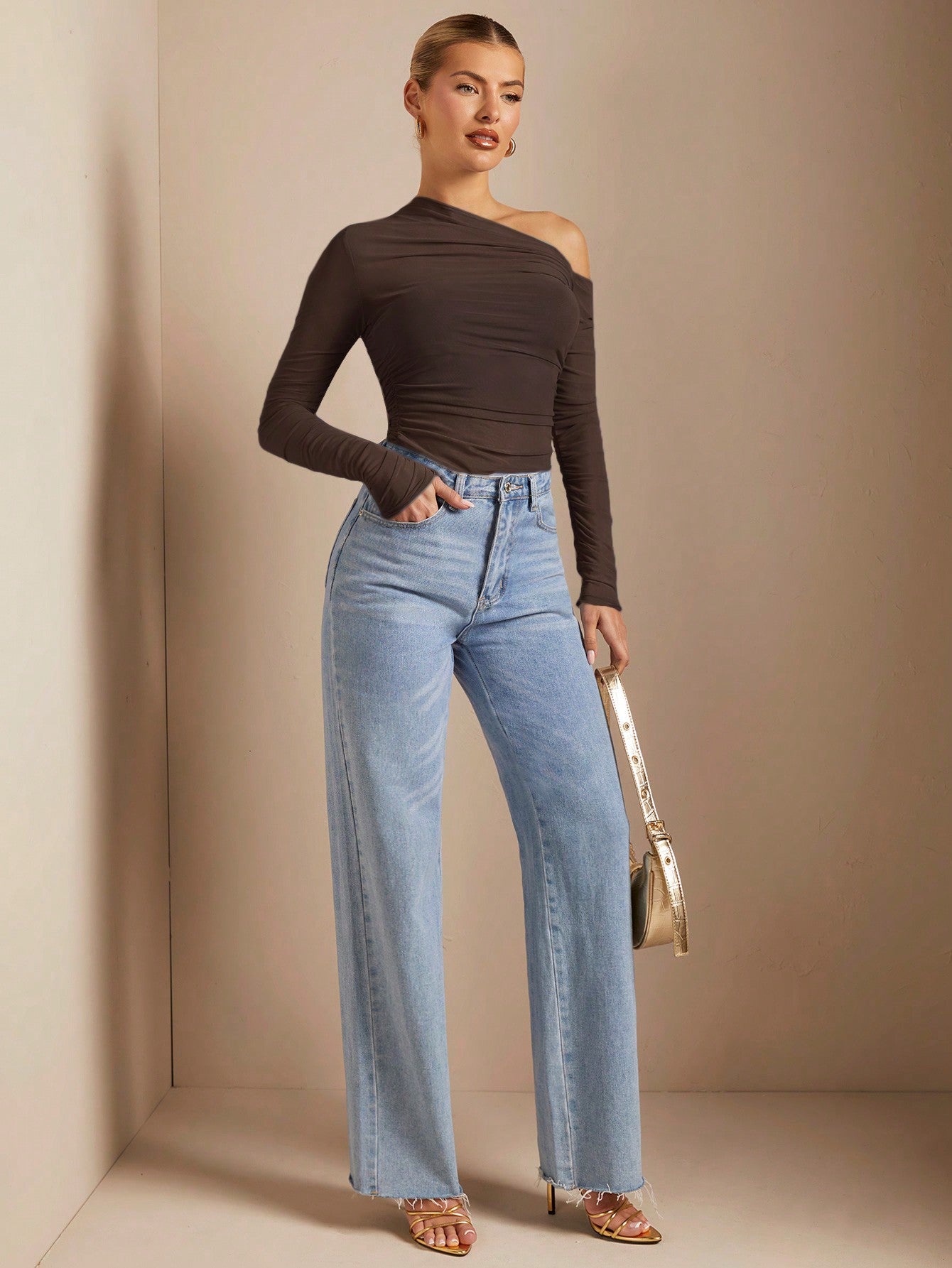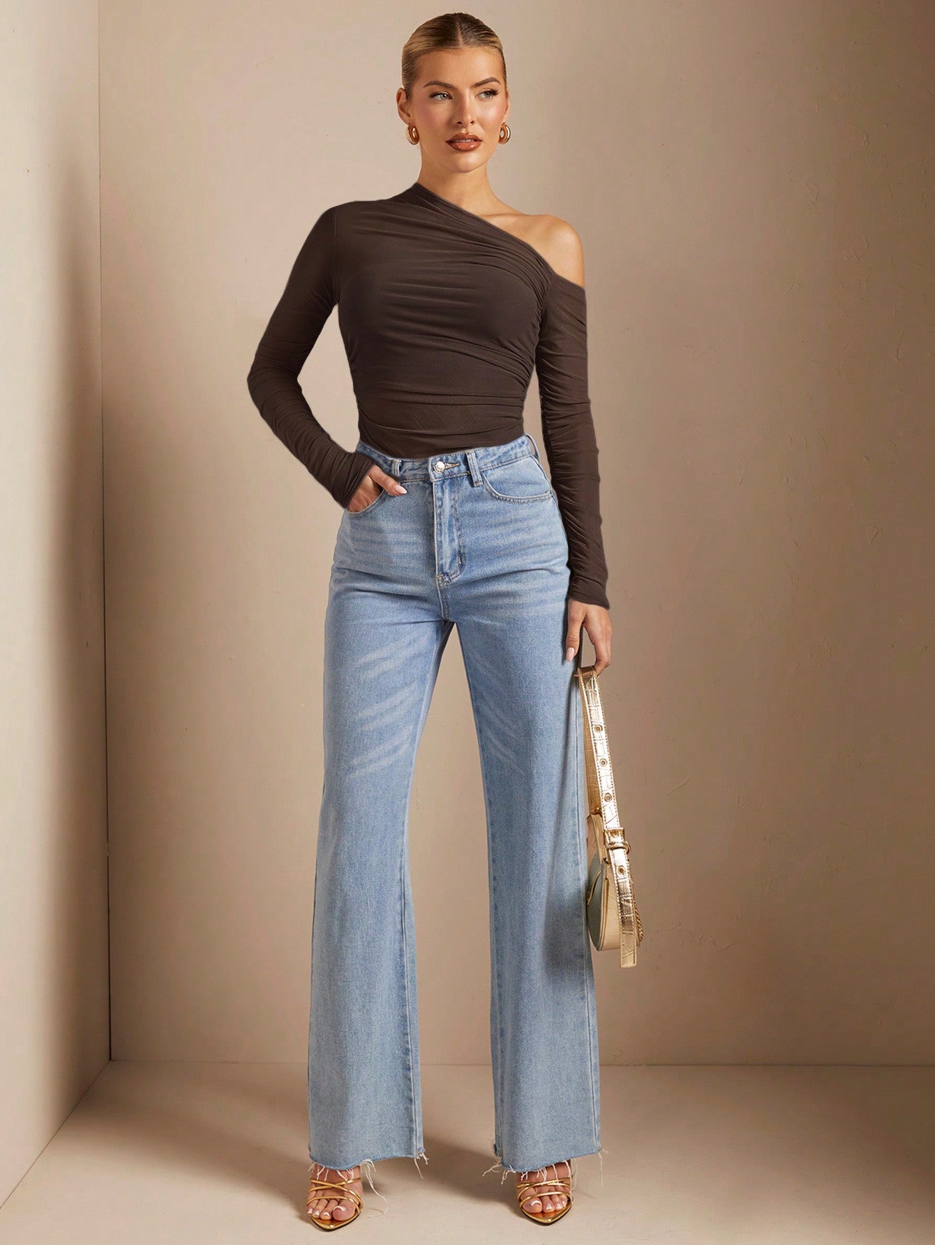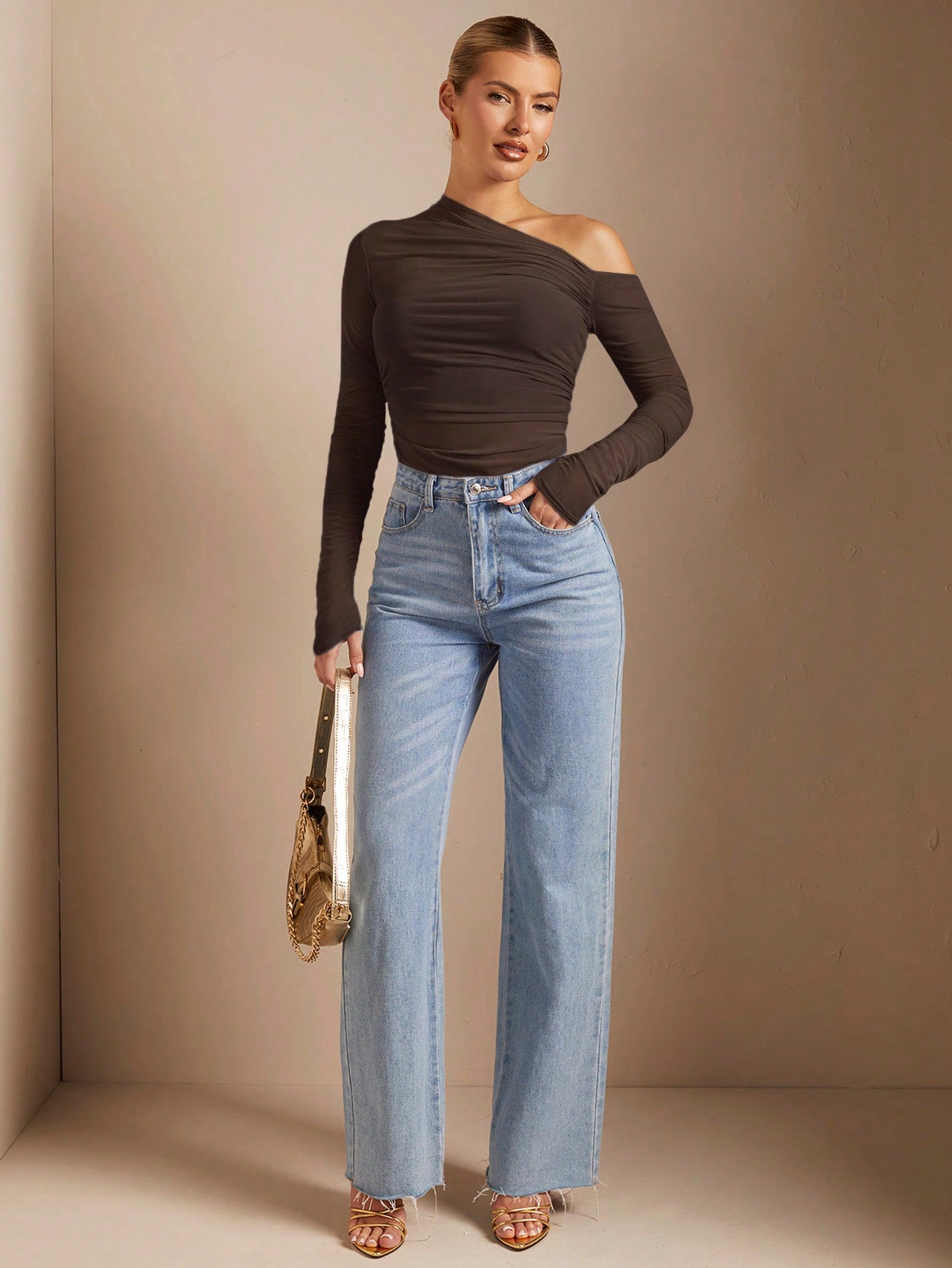 Einfarbiges figurbetontes T-Shirt Damen – Schräg und gerafft für perfekten Sitz